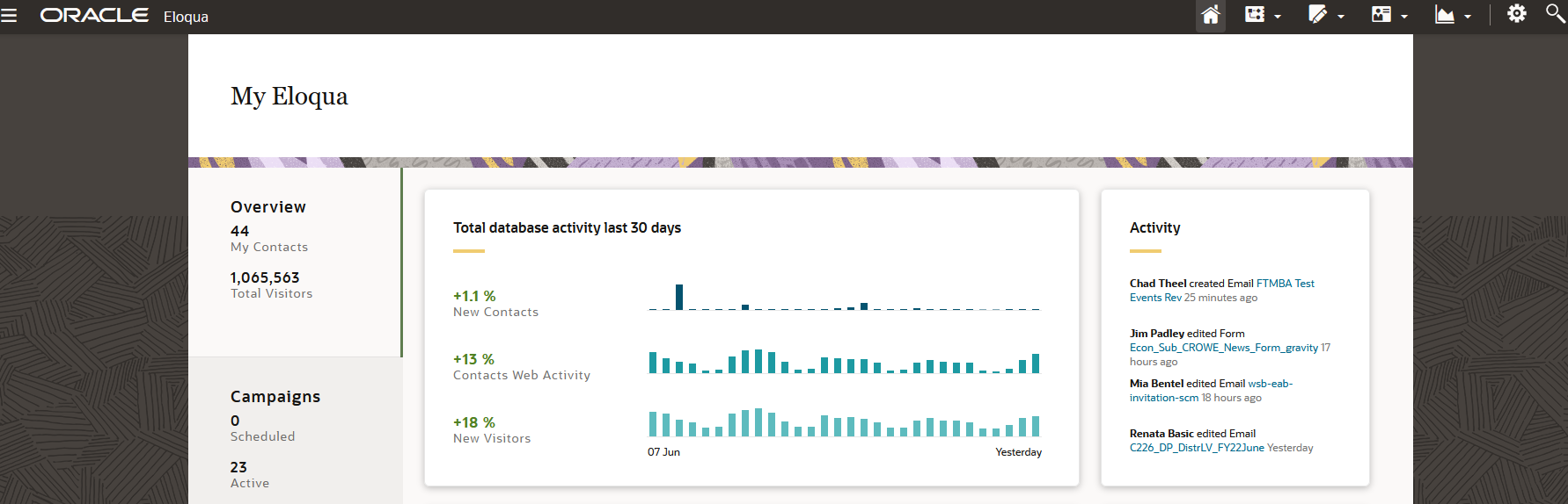 6. Otherwise, you will be brought to the main Eloqua page. It will look something like this.