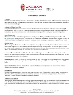 Whether you need a meeting space for a few hours or a few days, the Wisconsin School of Business offers a full range of event planning services. Our team will help you select a space, arrange for audio/visual services, and provide catering to meet your needs and budget. For more details, please visit https://bus.wisc.edu/about-us/event-services or review the Event Services Overview guide below.