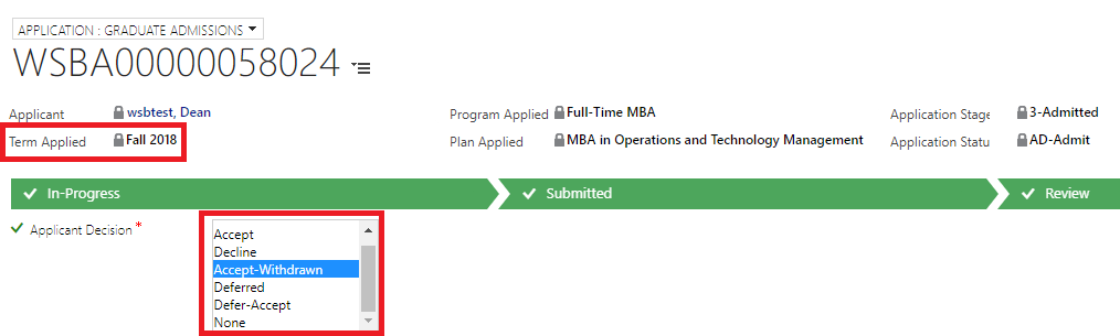 - If you want the application status to be admit-defer-accept, please reach out to the LRM team to change it in the System fields section.