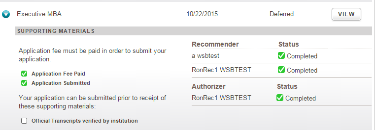 The applicant can log into the application system to see their Deferred status and view the admissions letter from the previous year.