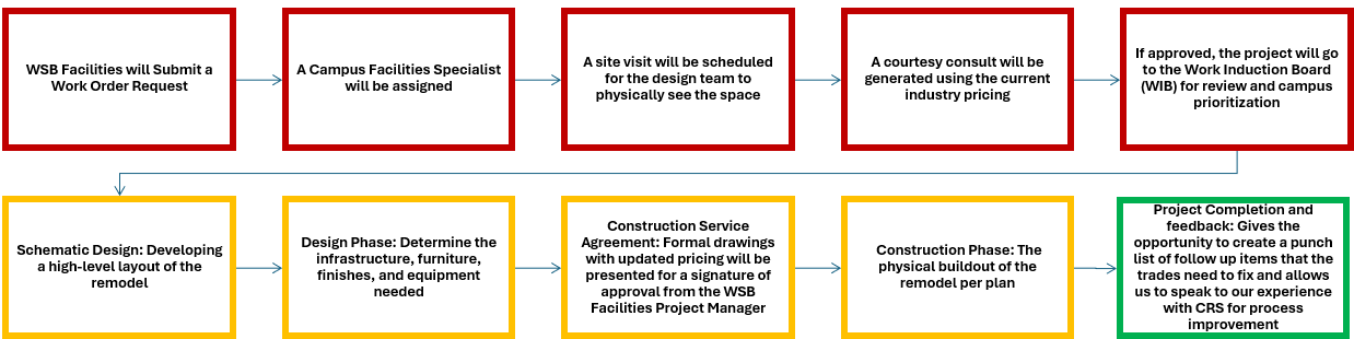 For any questions and/or to initiate a CRS Project, please reach out to the WSB Facilities Project Manger.