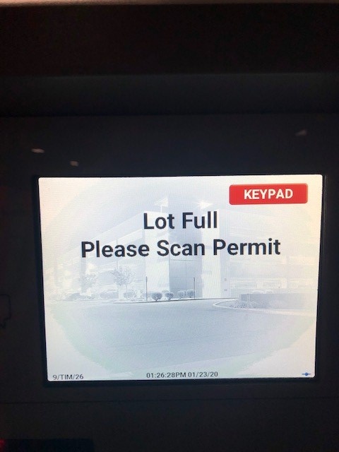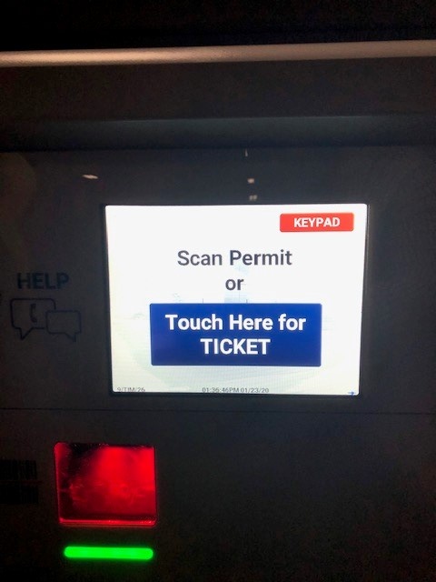 If you Do Not have a permit, press the "Touch Here For Ticket". Note: If the Lot is Full you must have a permit to enter.